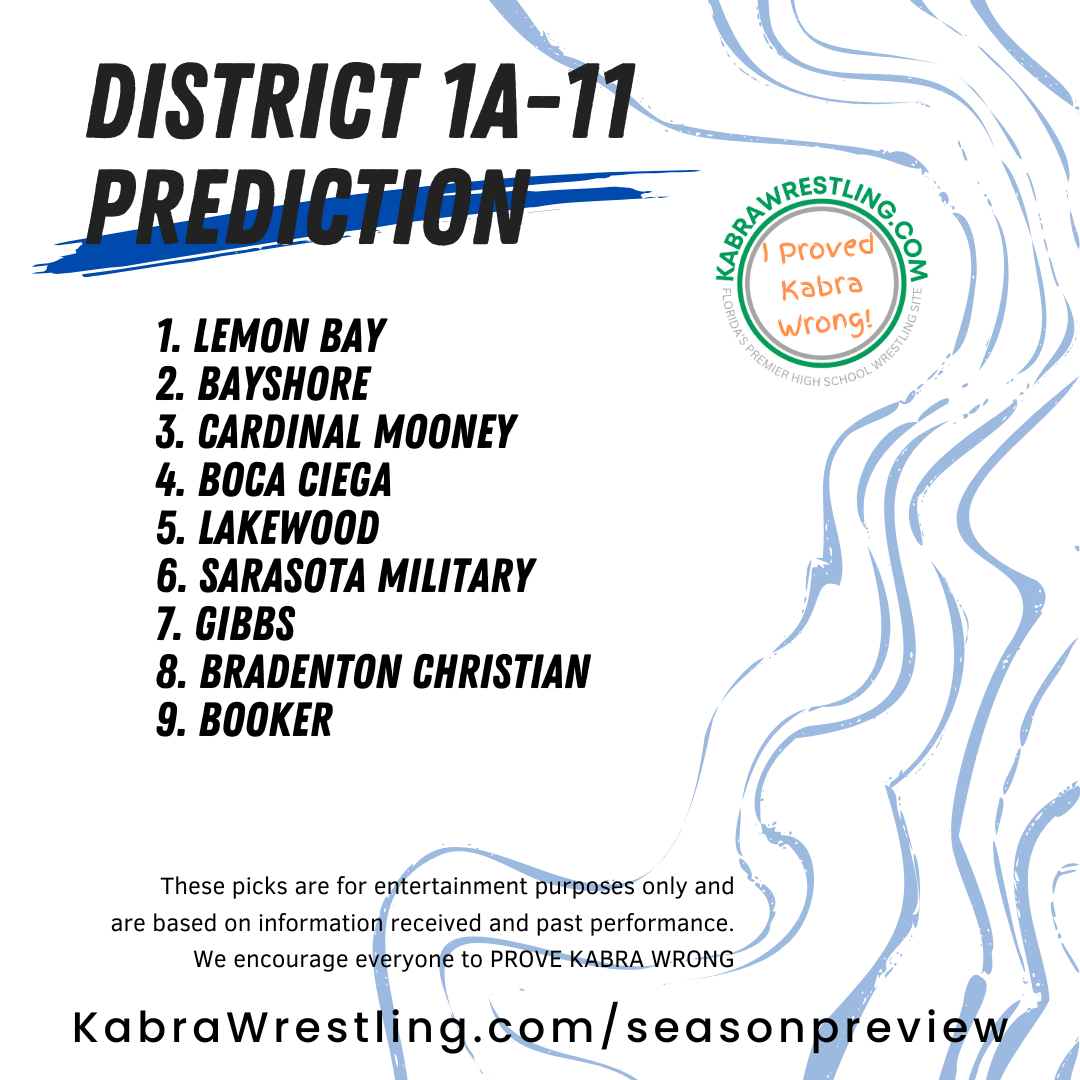 Wrestlers to watch: Broc Dahlin (Bayshore), Trenton Lindsay (Boca Ciega), Atticus Randall (Lemon Bay), Luke Ladle (Cardinal Mooney).