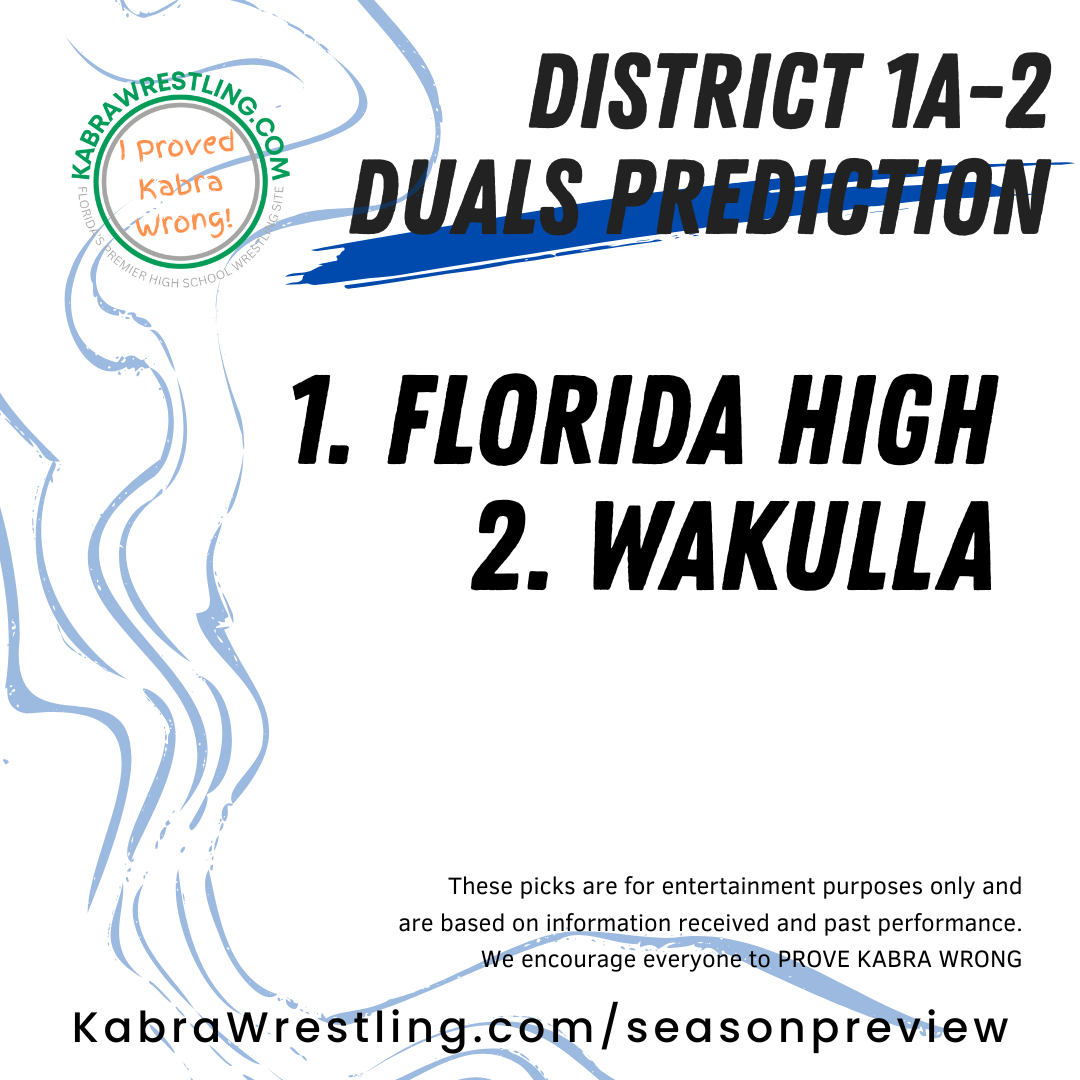 Outlook: Florida High should find themselves fighting for district titles in duals and IBT and looking for some place-winners in Kissimmee.