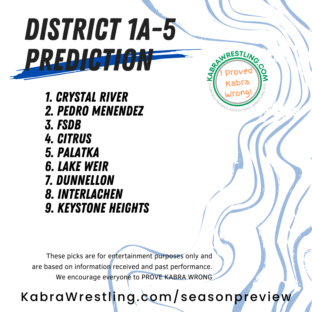 The favorite: Crystal River. The team bring back most of its wrestlers from a year ago.