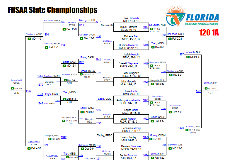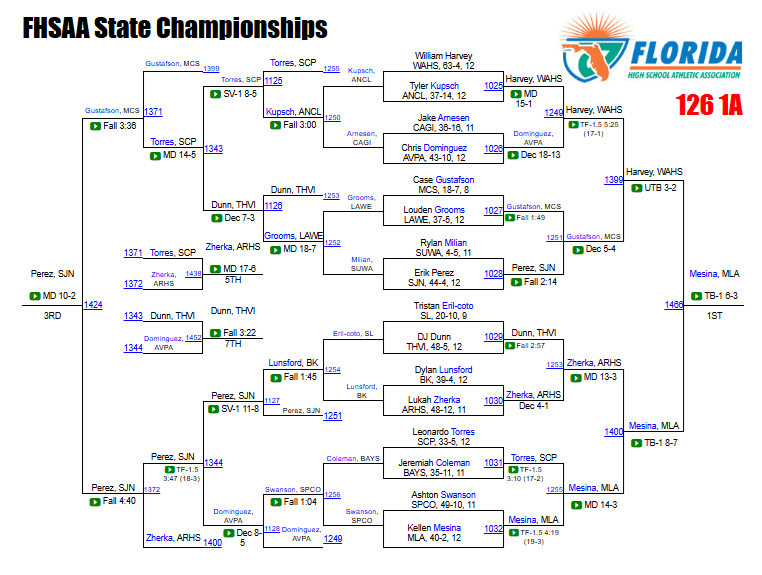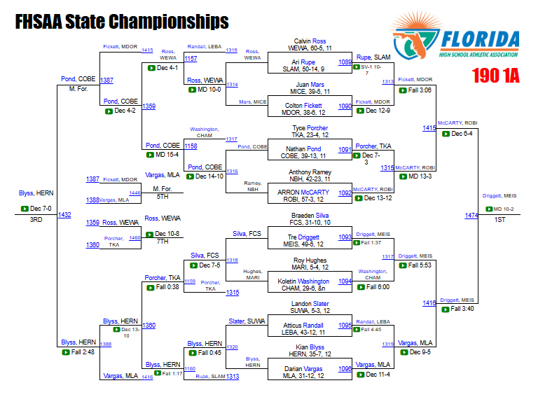 Bracket buster: Dominguez. A third place finish in his region had him ranked #12 coming into the state tournament. The Avon Park senior won two matches to reach the podium.