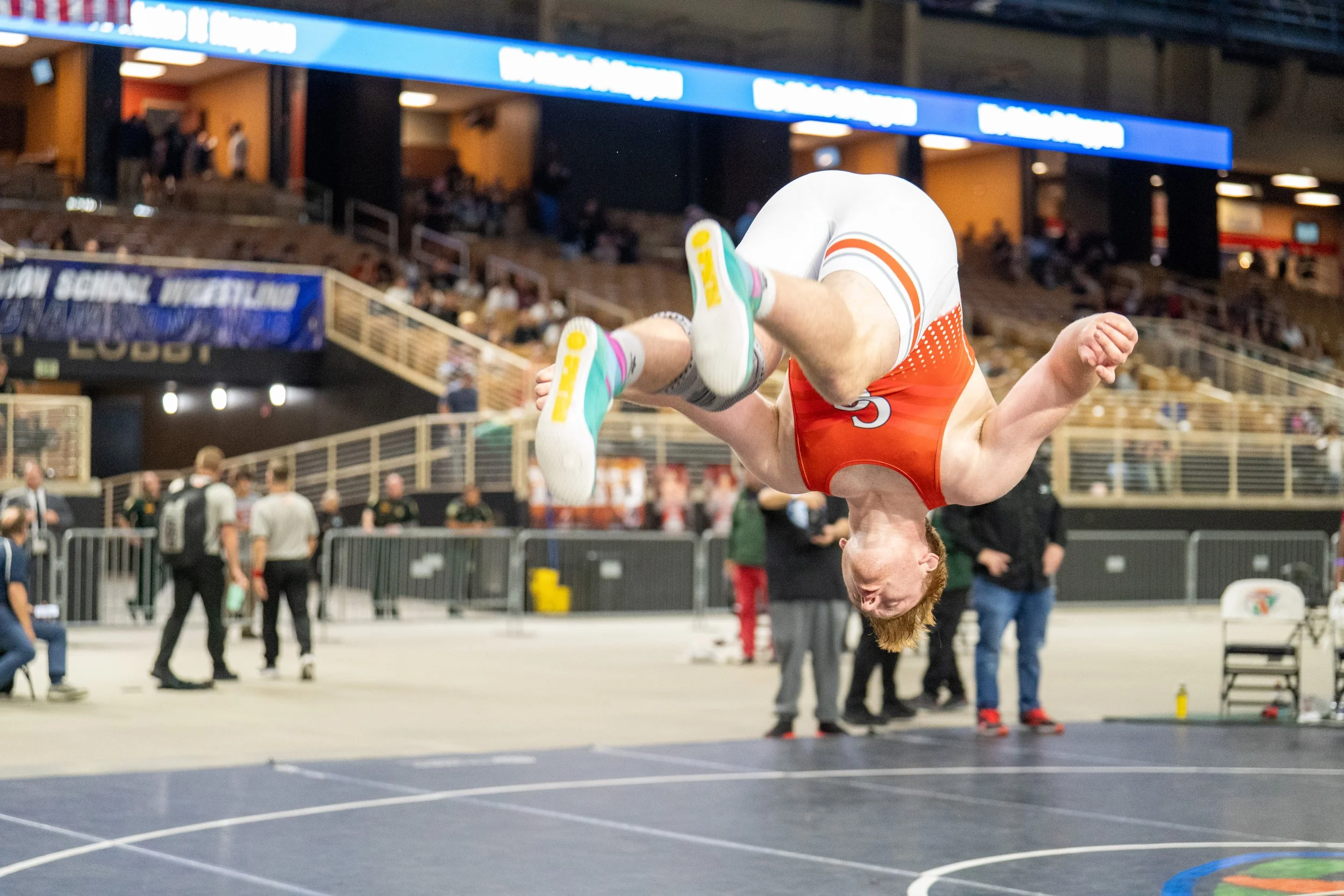 Champion: Bennett Sweitzer dec. Jacob Bacon 5-2. In a tight battle, Sweitzer earned a state title with a takedown in the third period to win his school’s first-ever wrestling state title.