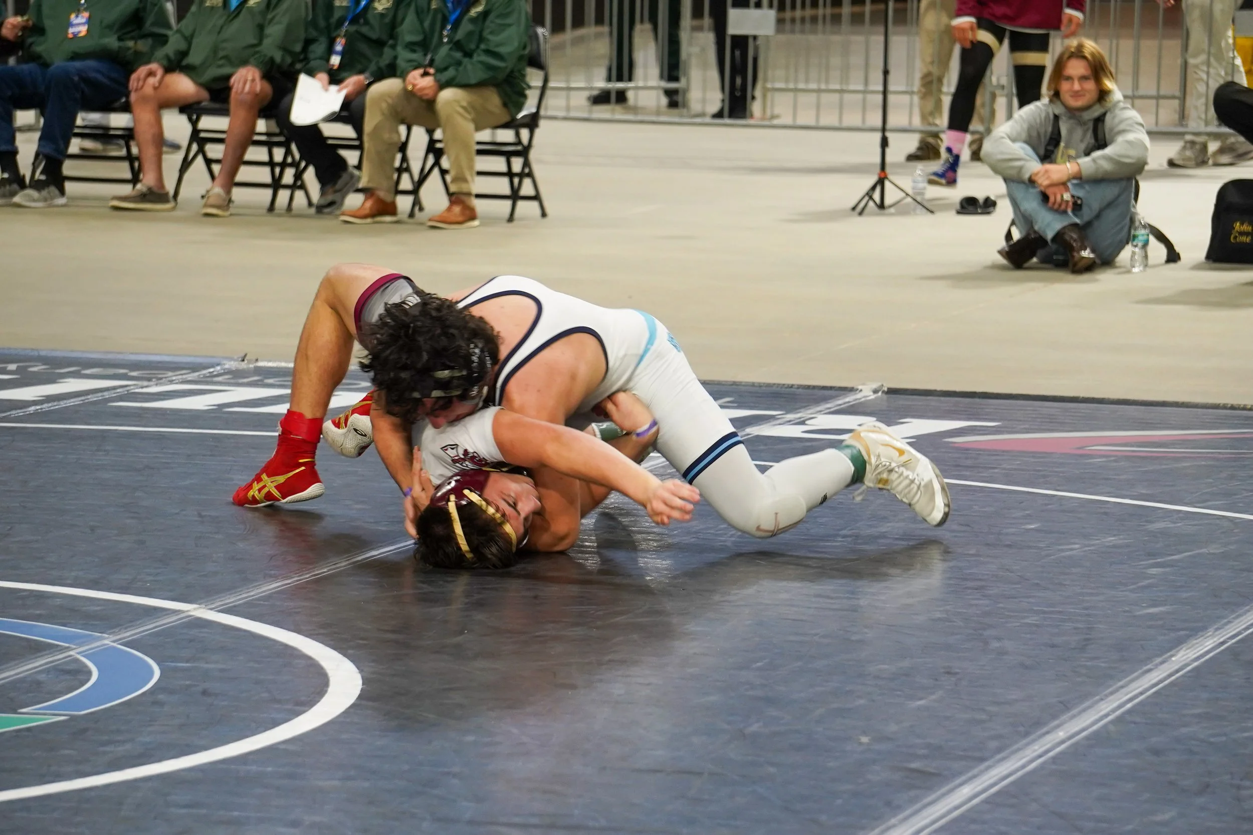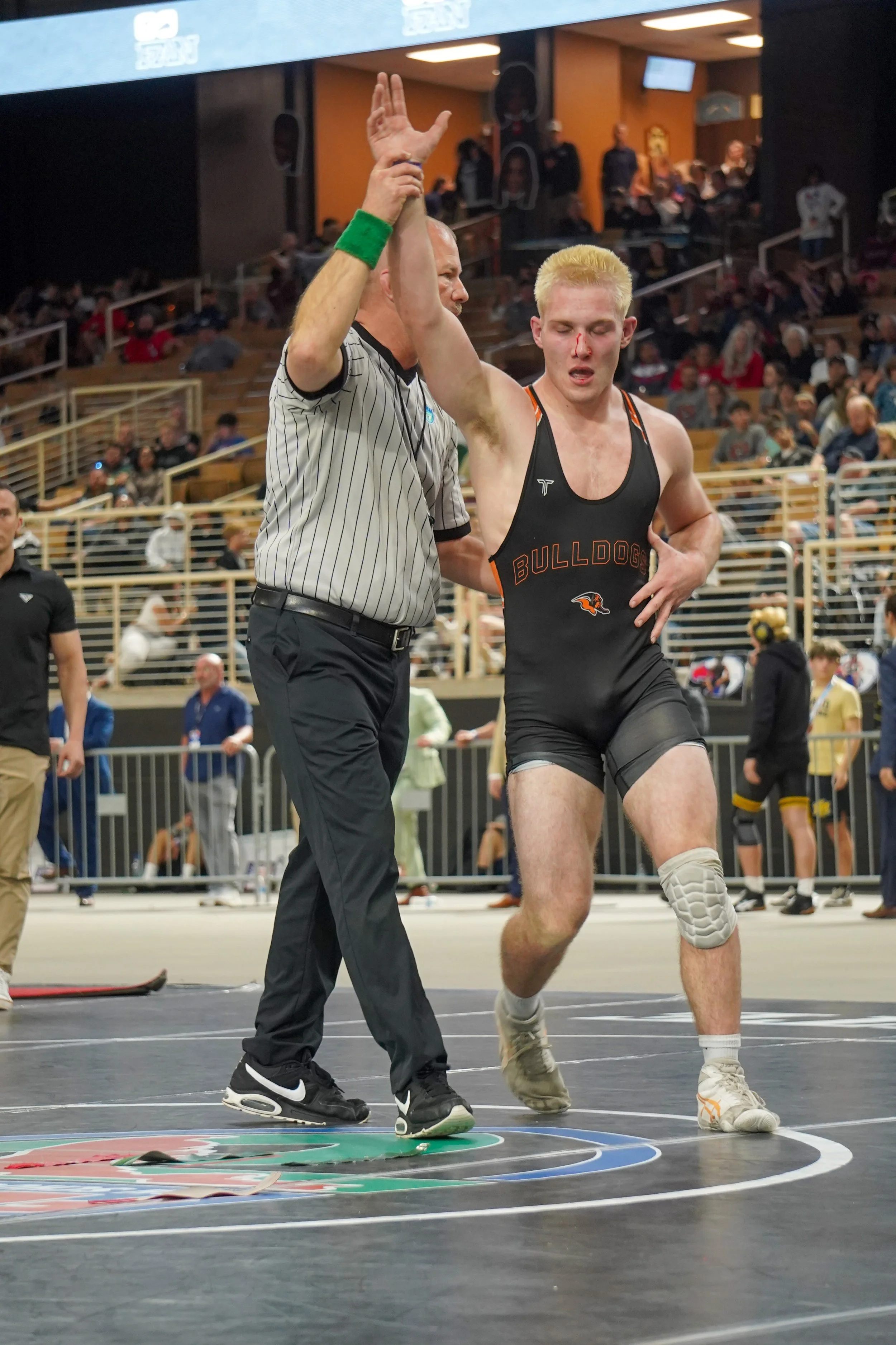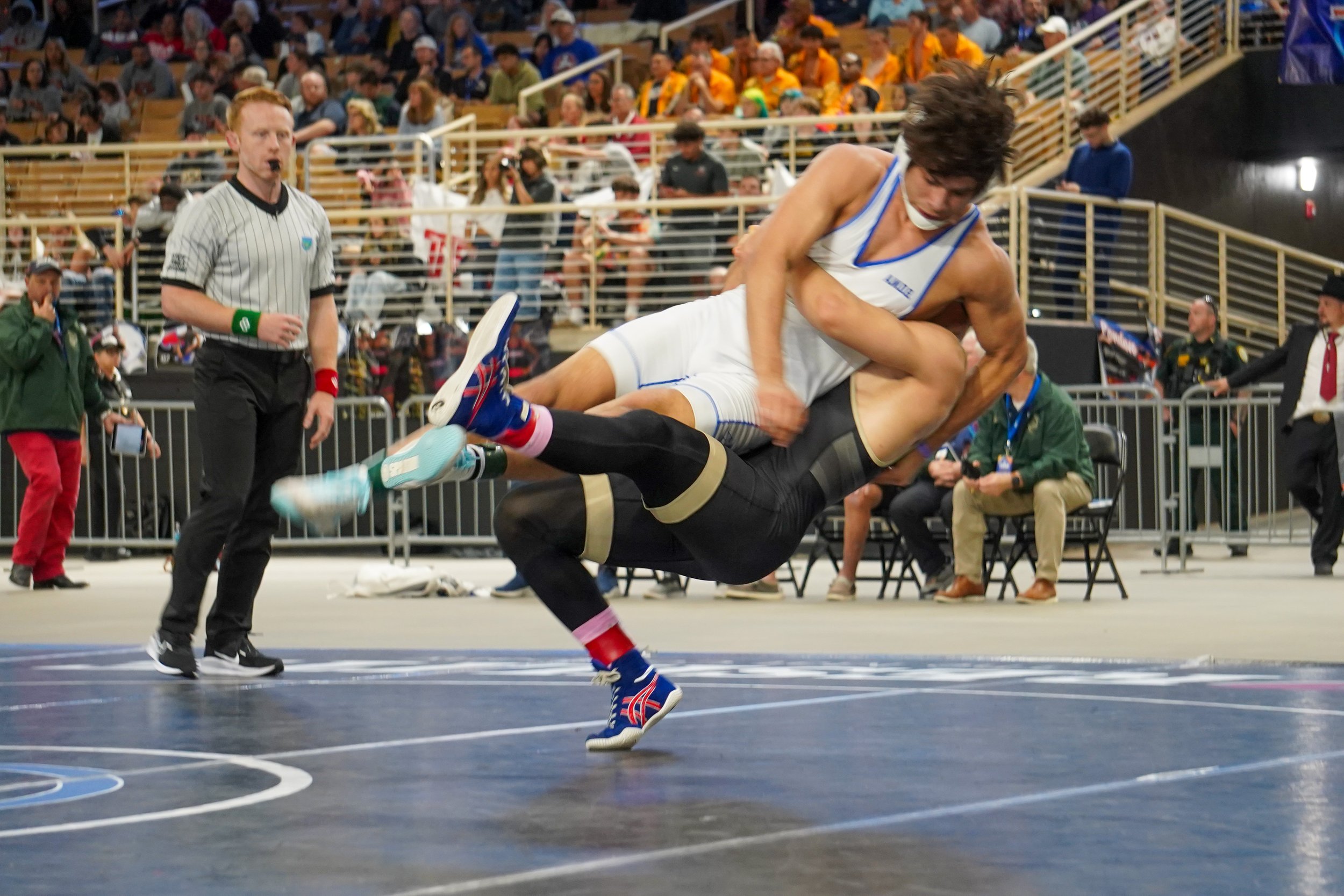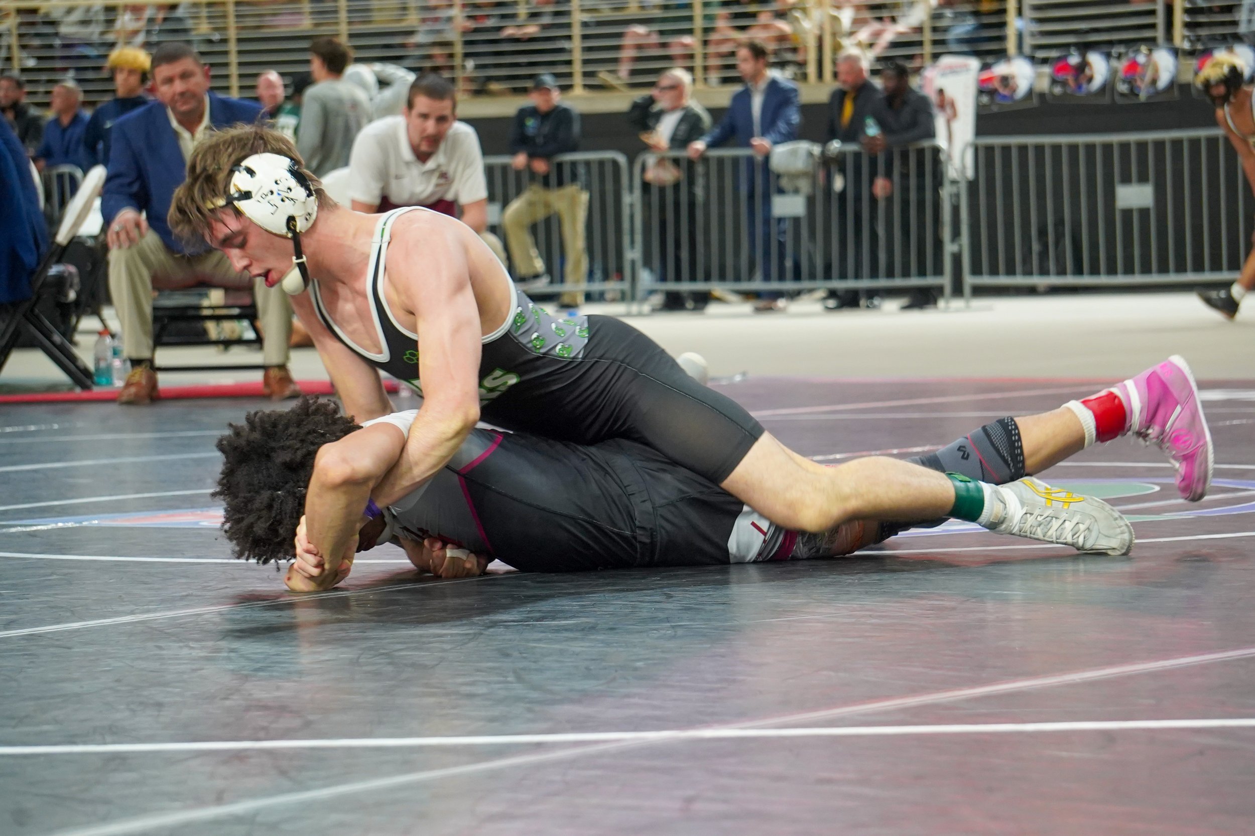 Champion: Tristan Sainz tech. Jaxon Arfaras 20-4. Sainz finished his career with a second state title, exploding a 7-1 lead entering the third period to a tech fall with 31 seconds left.
