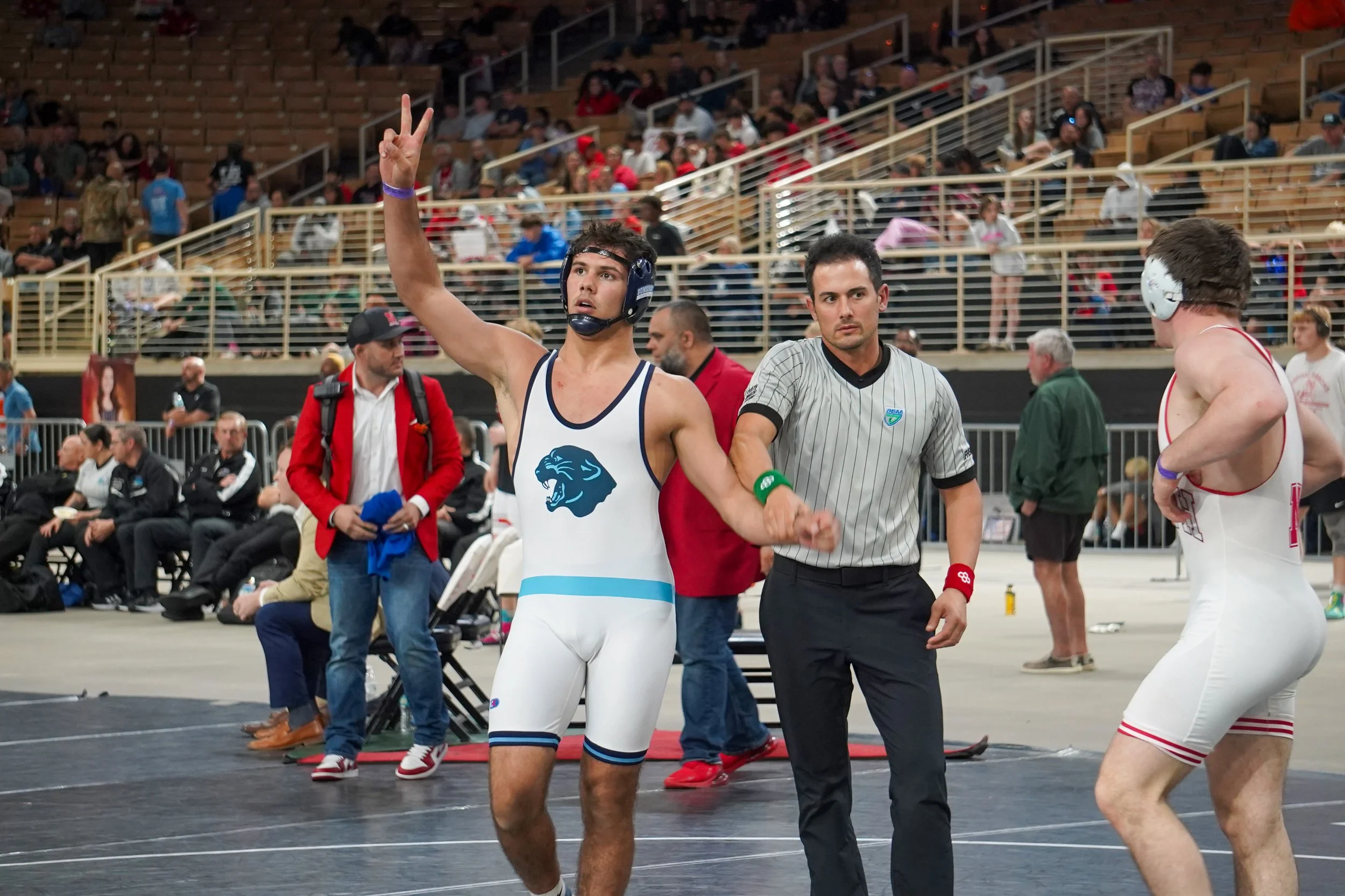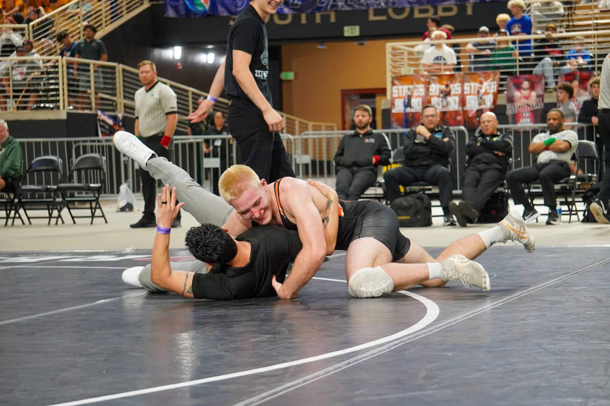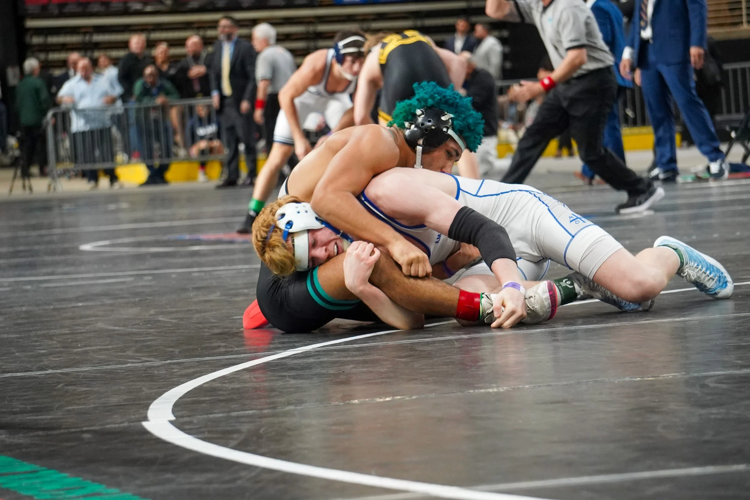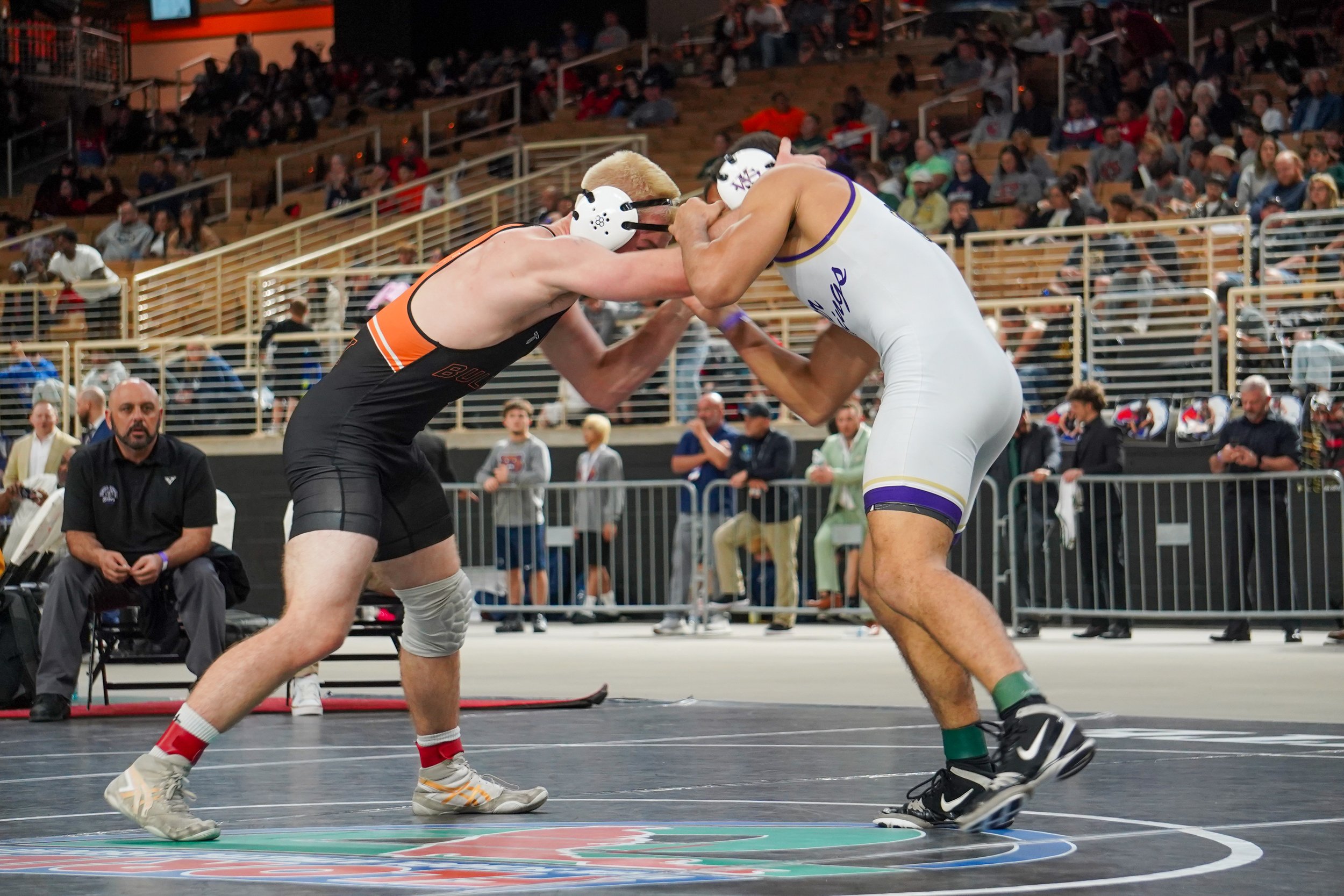Champion: Tristan Sainz tech. Jaxon Arfaras 20-4. Sainz finished his career with a second state title, exploding a 7-1 lead entering the third period to a tech fall with 31 seconds left.