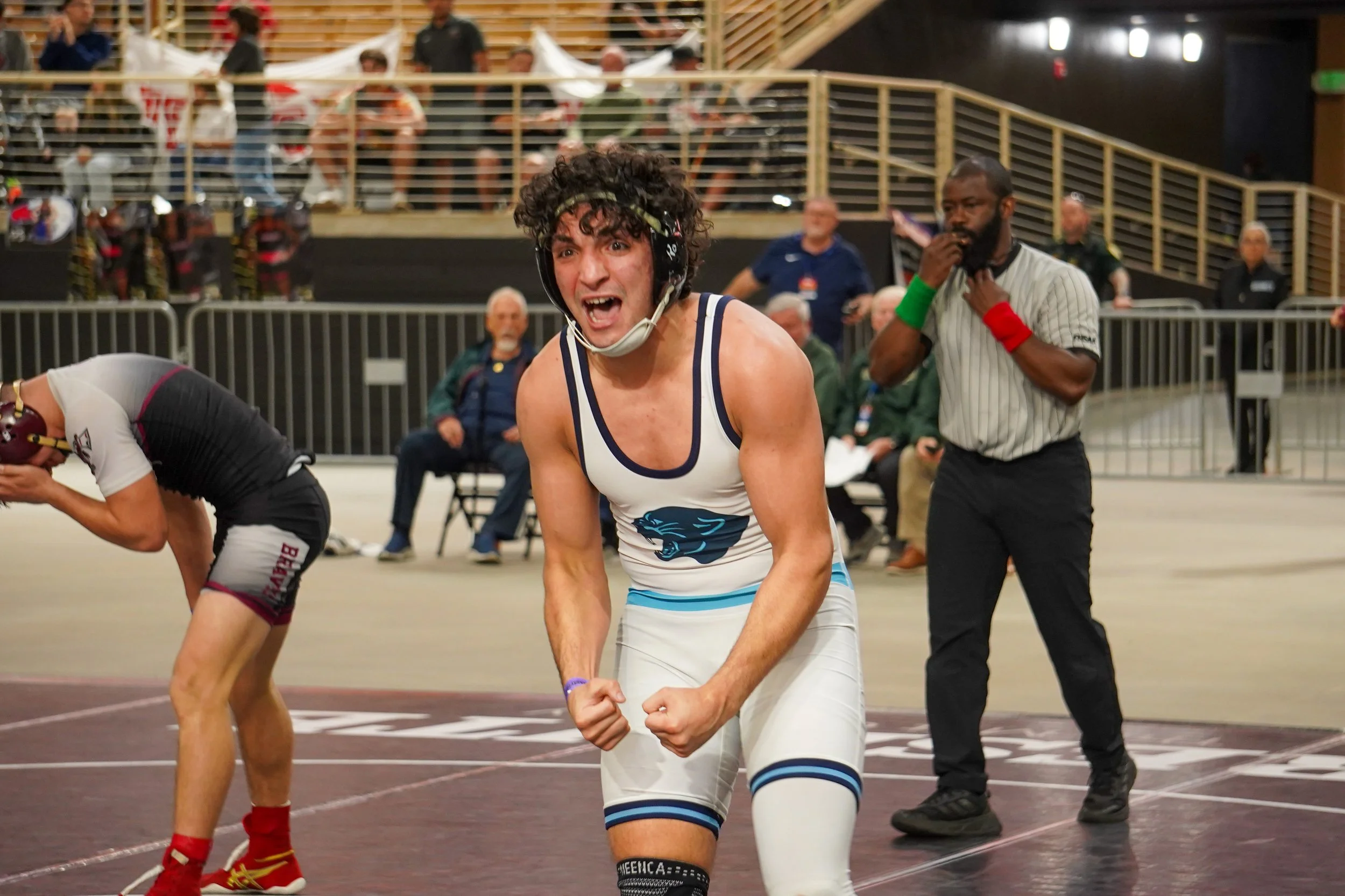 Champion: Kael Seneca maj. Tyler White 13-0. Seneca controlled the match from start to finish to finish his high school career with a state title.