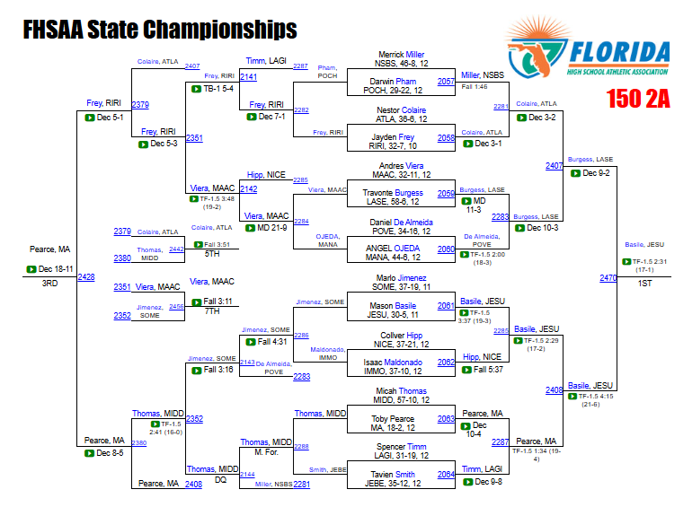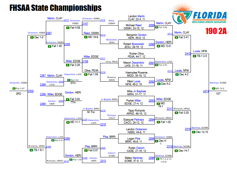 Best non-finals match: Villareal p. Julian Brady (Suncoast) 5:28. This match was a back-and-forth duel with the score tied at 9-9 when Villareal made his winning pin move in the placing round.
