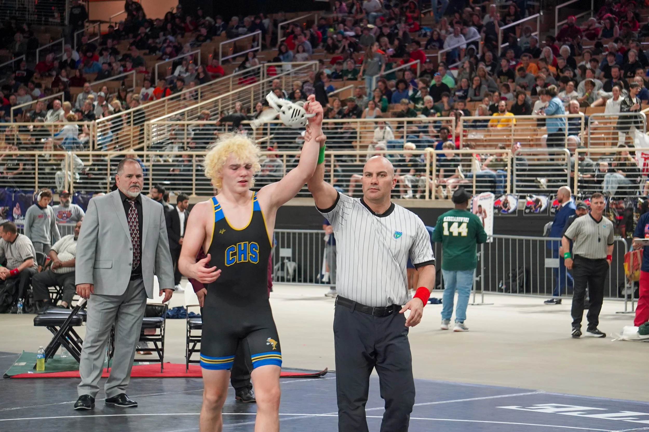 At the end of the night, Jeremiah Chavis was celebrating his first state title, winning at 215 pounds. Tyler White (126), Jaxon Arafas (157), and Konstantin Khaspekian (165) all earned second place honors.