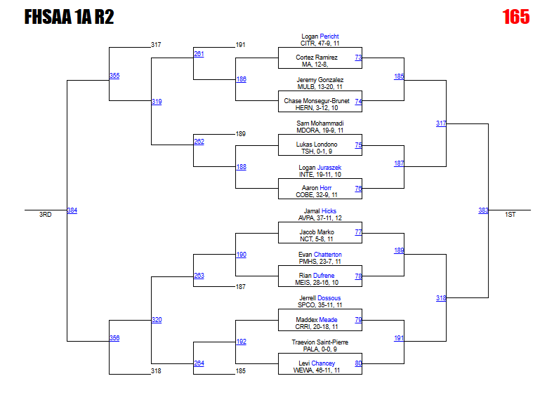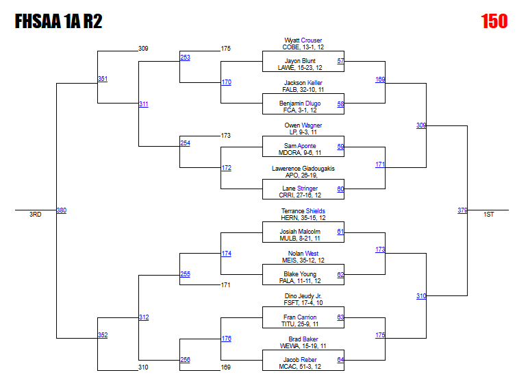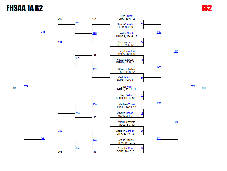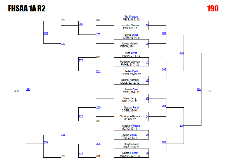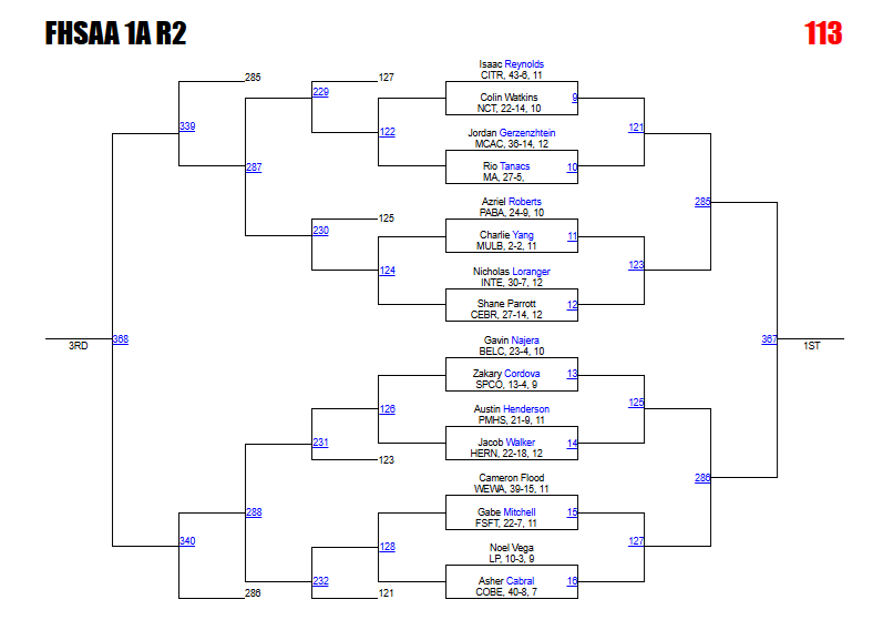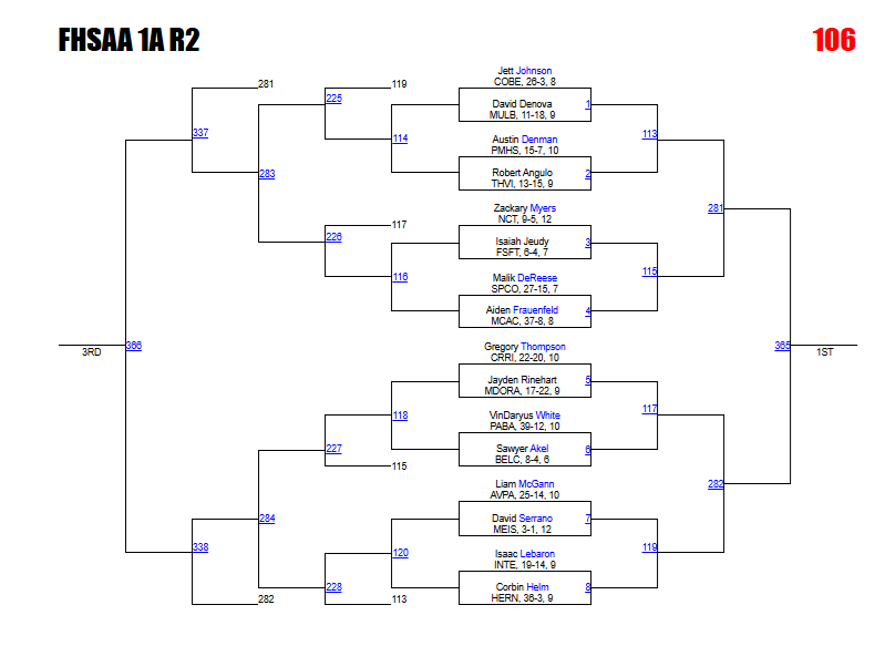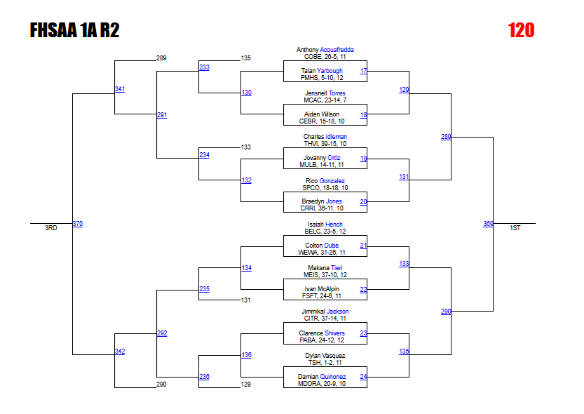 Kabra says: Acquafredda and Tieri could meet in a district final rematch here. The Cocoa Beach junior won that meeting 13-7. This is another bracket with a logjam in the rankings around the 3-4 spots on the podium. We like how the bracket plays out for Jones and Quinonez, but anything could happen here.