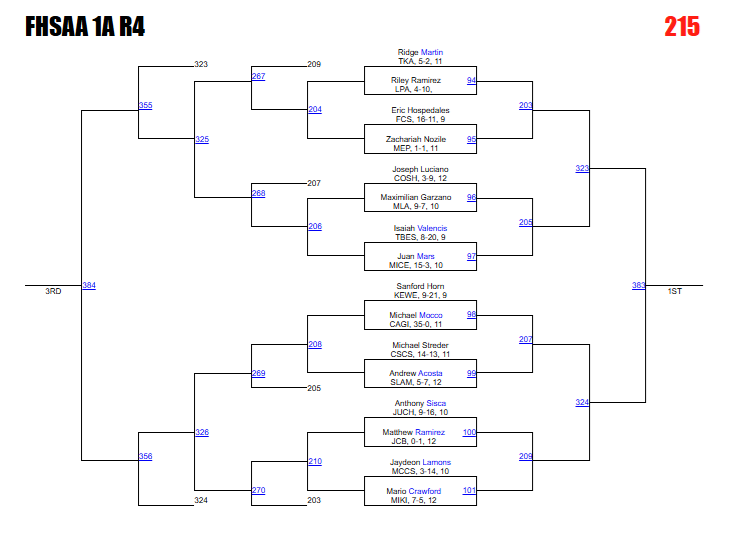 Kabra says: Chen is a two-time state placer after finishing third at 215 last year. He’s the favorite here to win a region title. The bottom half of the bracket is loaded with Voss, Flack, and Solache picked for the podium.