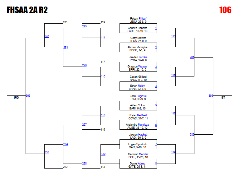 Kabra says: Lowe and Krsul did not meet when Lake Gibson and Tampa Jesuit battled in the region final at state duals. It’s tough to get a read on this potential final and we could see an argument for either one to win here. McKay reached the blood round here last year and is looking to book his first ticket to the state tournament.