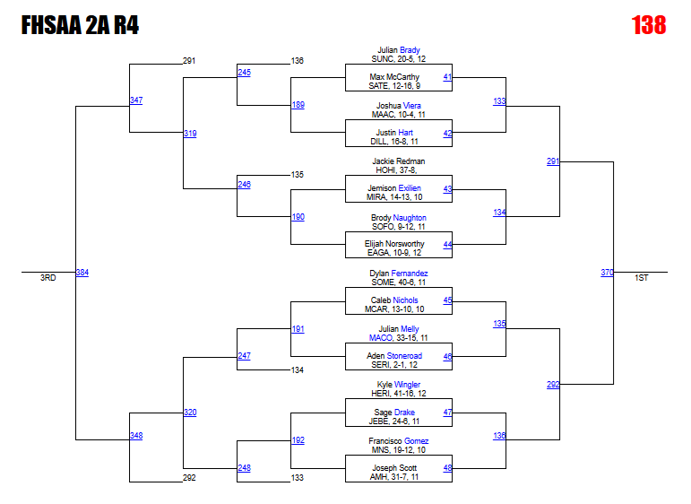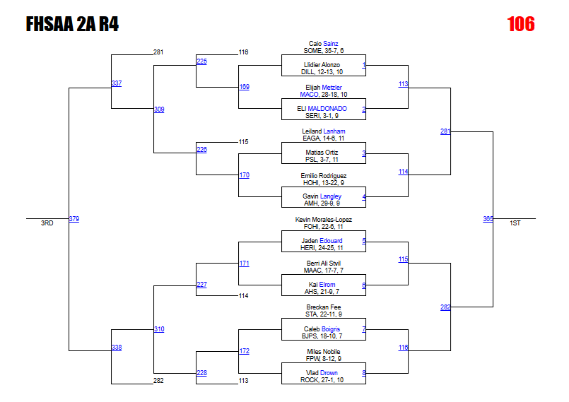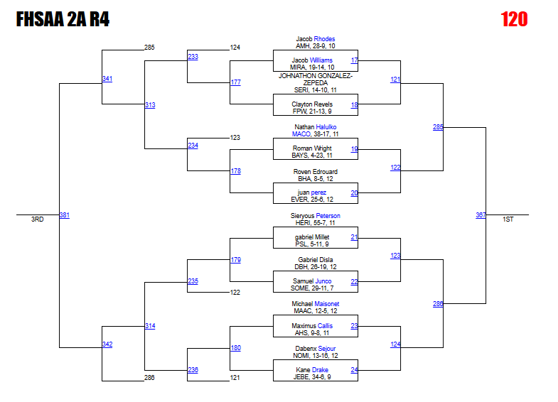 Kabra says: Returning state qualifier Diaz is looking to return to Kissimmee with a region title this year. Weatherly earned a spot on the other side of the bracket of Diaz after winning the 2A-13 district title and could be waiting in the final. This is another bracket with a loaded logjam of wrestlers who deserve a spot on the podium and will battle it out.