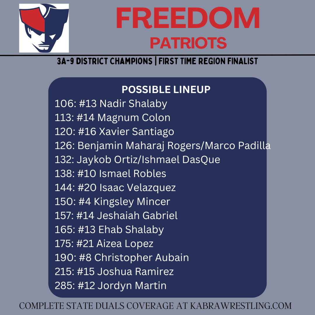 The way these two sides match up, it could come down to who wins a couple unranked matches. In the end, Freedom might have the edge with numbers and should advance to their first-ever state semifinal on Saturday.