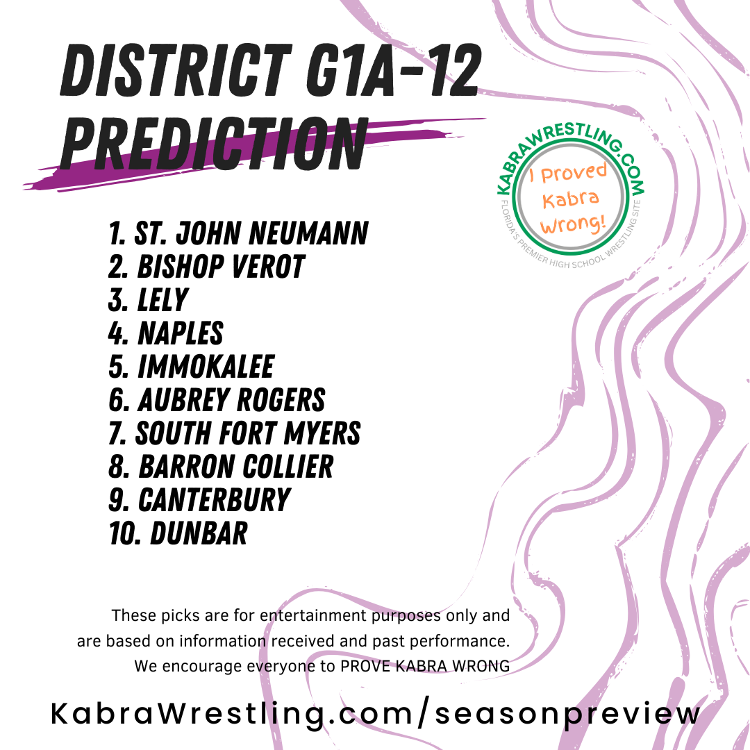 Team to watch: Bishop Verot. Last year’s district champs graduated five seniors but will have some young wrestlers will make this team better as the season grows.