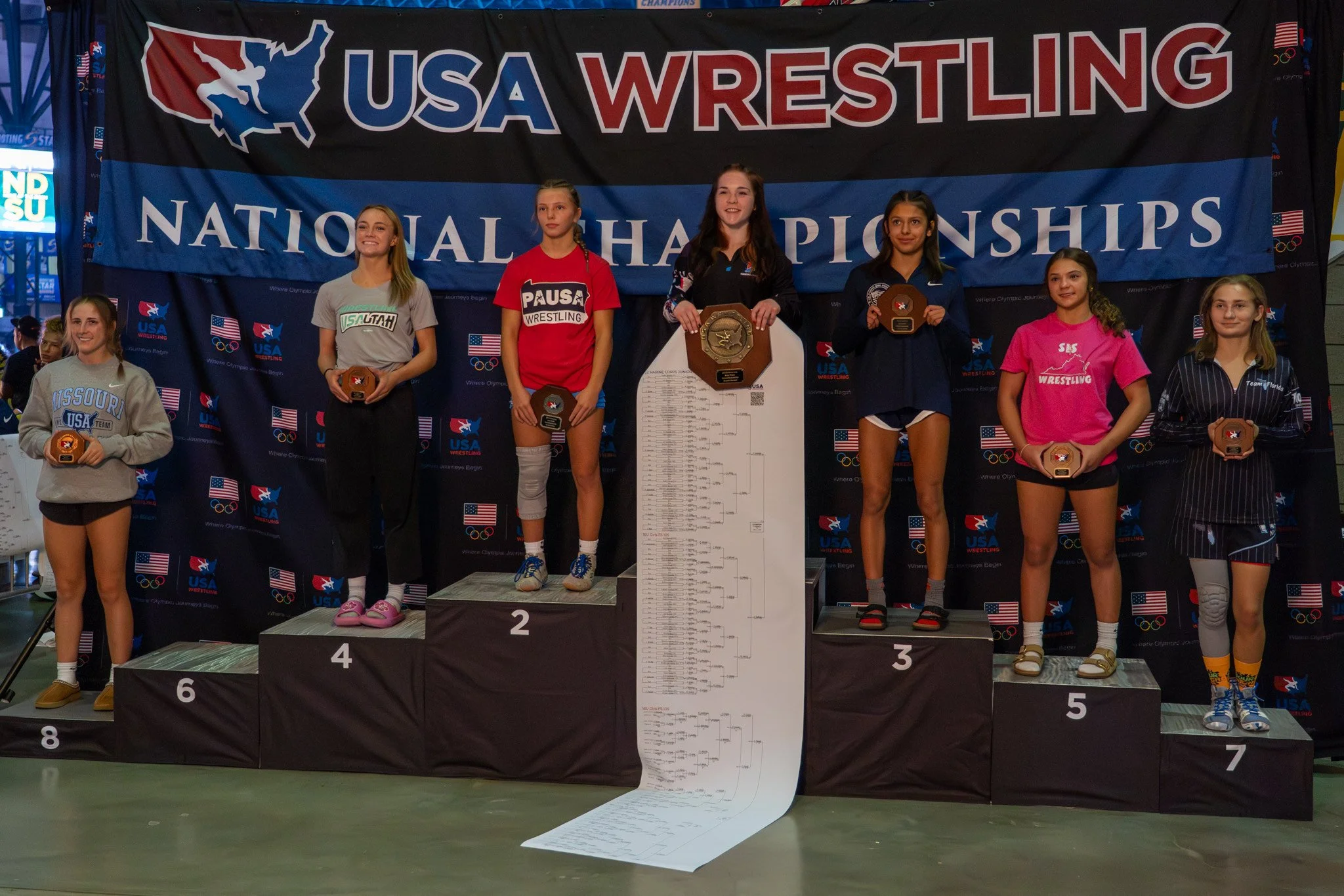 Ailee Briggs, Kendal Haynie, Makayla Ocean, TorRina Rushing, Kiera Partello and Mariah Mills also finished on the podium to earn All-American status for Team Florida.