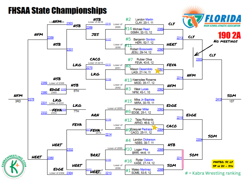 Wrestlers who could prove me wrong: Mateo Martinez (Lakeland); Drew Holmquist (Clay)