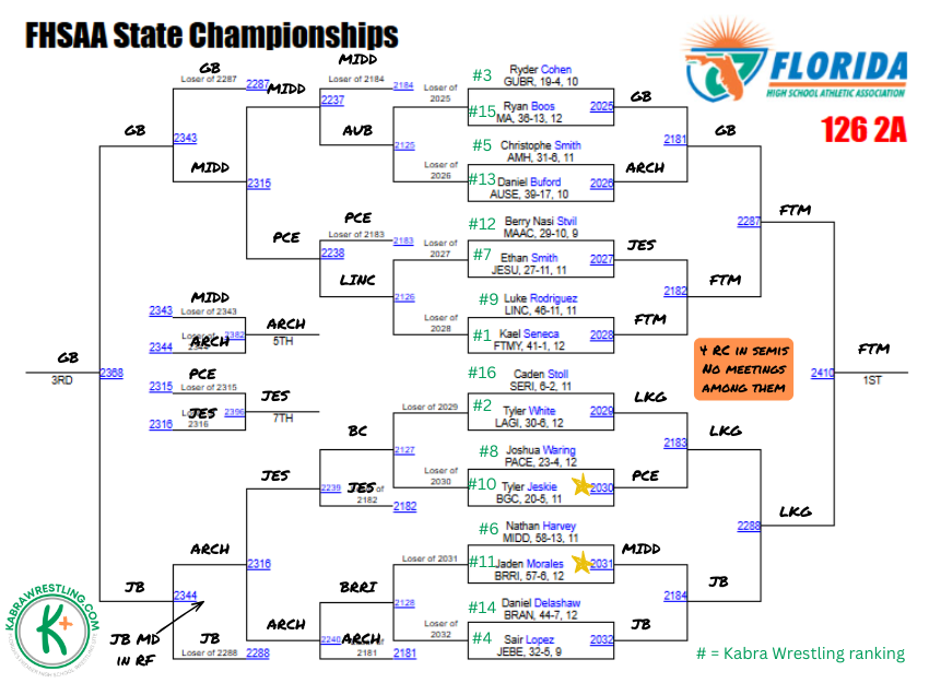 Wrestlers who could prove me wrong: Tyler Jeskie (Barron Collier); Jaden Morales (Braden River)