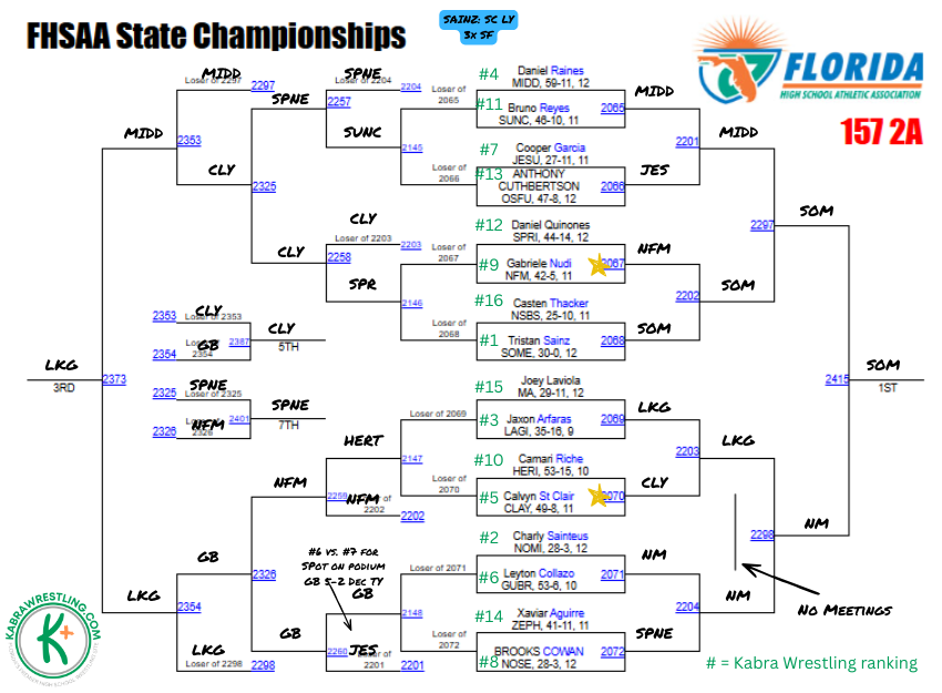 Wrestlers who could prove me wrong: Nestor Colaire (Delray Beach Atlantic); Spencer Timm (Lake Gibson)