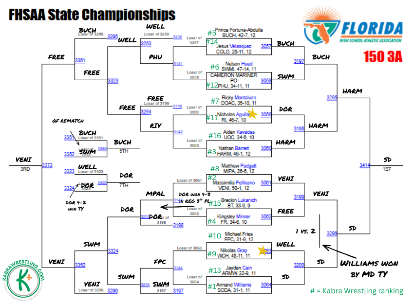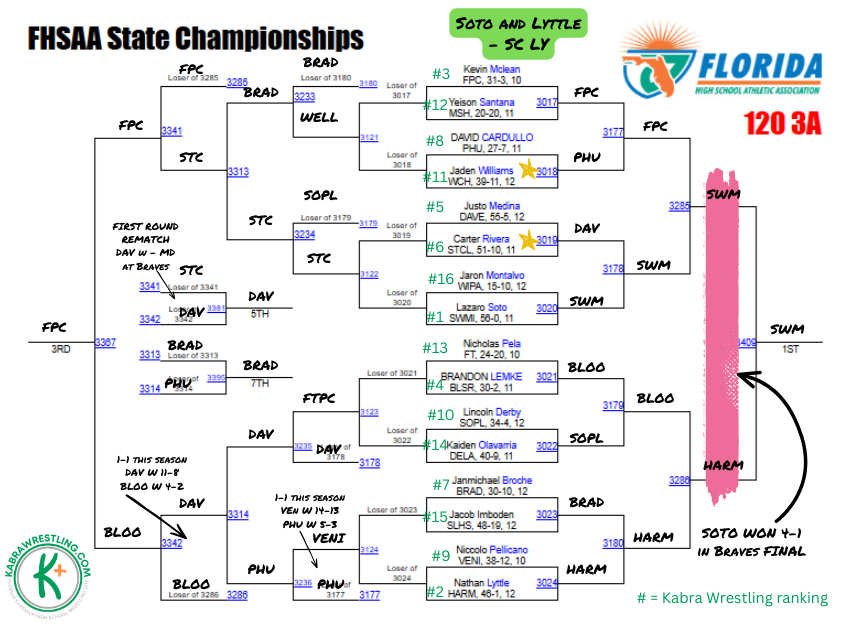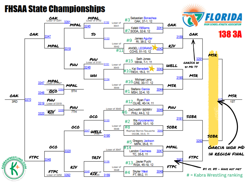 Wrestlers who could prove me wrong: Kaleb Williams (South Dade); Kai Benedetti (Wellington)