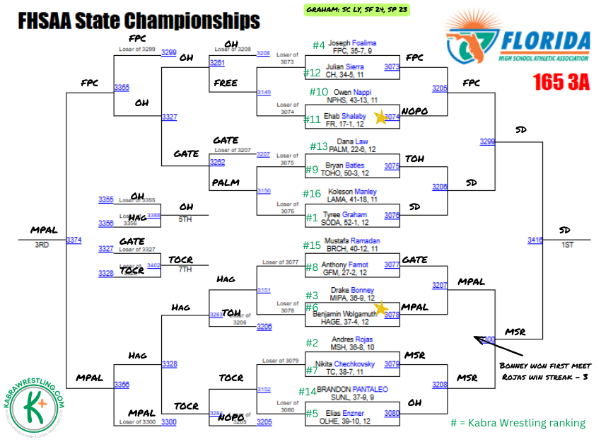 Wrestlers who could prove me wrong: Owen Nappi (North Port); Ehab Shalaby (Orlando Freedom)