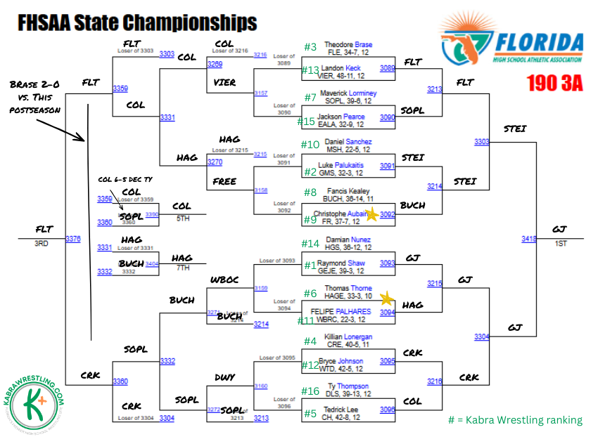 Wrestlers who could prove me wrong: Matthew Padgett (Miami Palmetto); Cameron Mariner Po (Palm Harbor University)