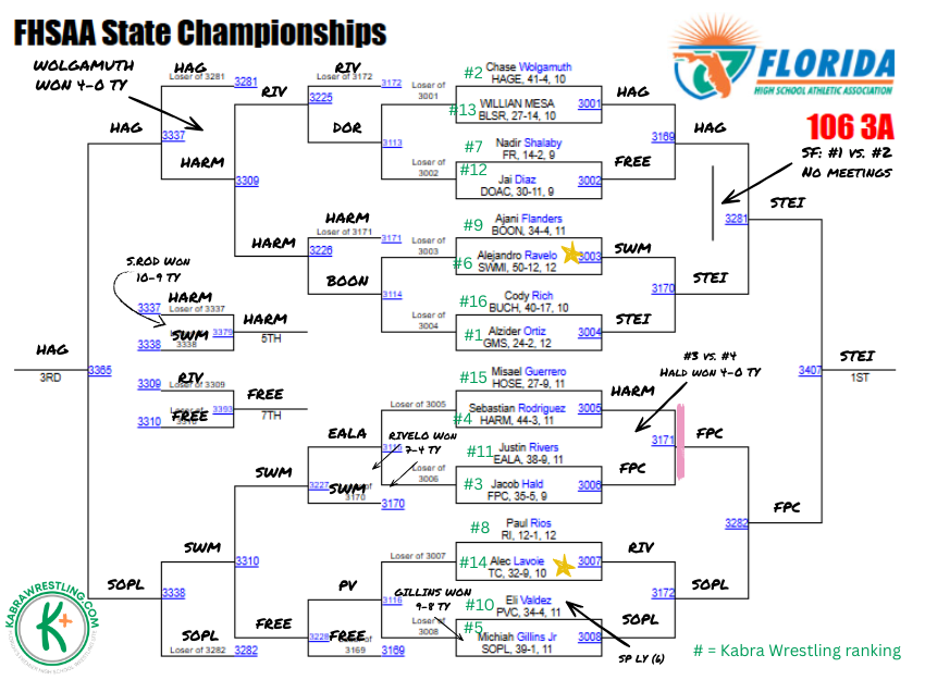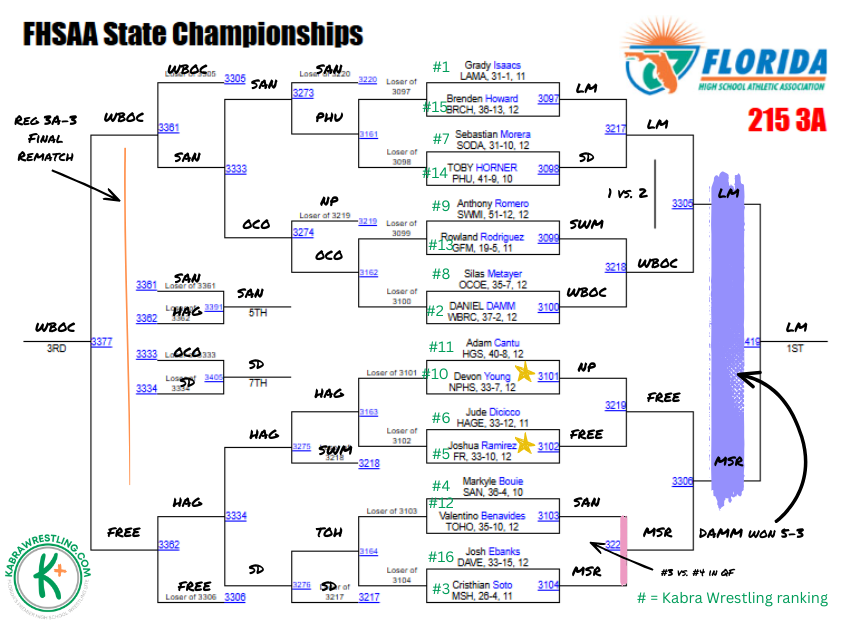 Wrestlers who could prove me wrong: Jonathan Olmo (Kissimmee Osceola); Cameron Haines (South Dade)