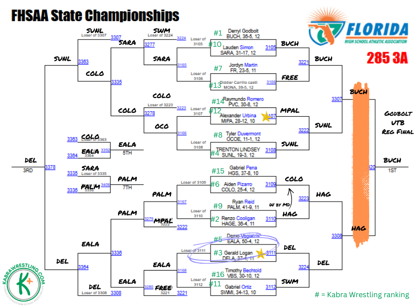 Wrestlers who could prove me wrong: Jordyn Martin (Orlando Freedom); Tyler Duvermont (Ocoee)