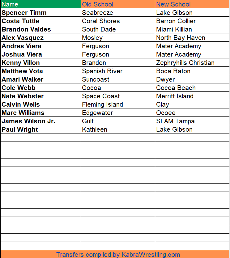 If you know of a transfer that isn’t listed, please email me at brant@kabrawrestling.com.