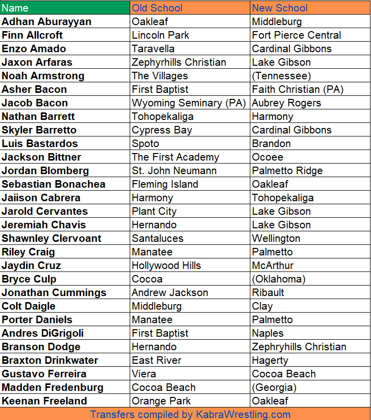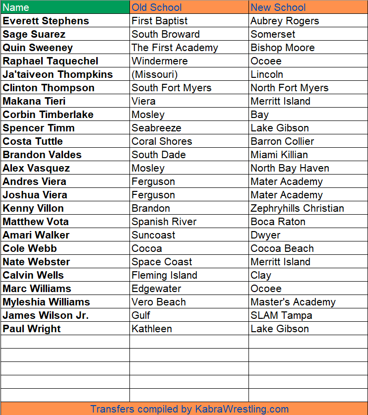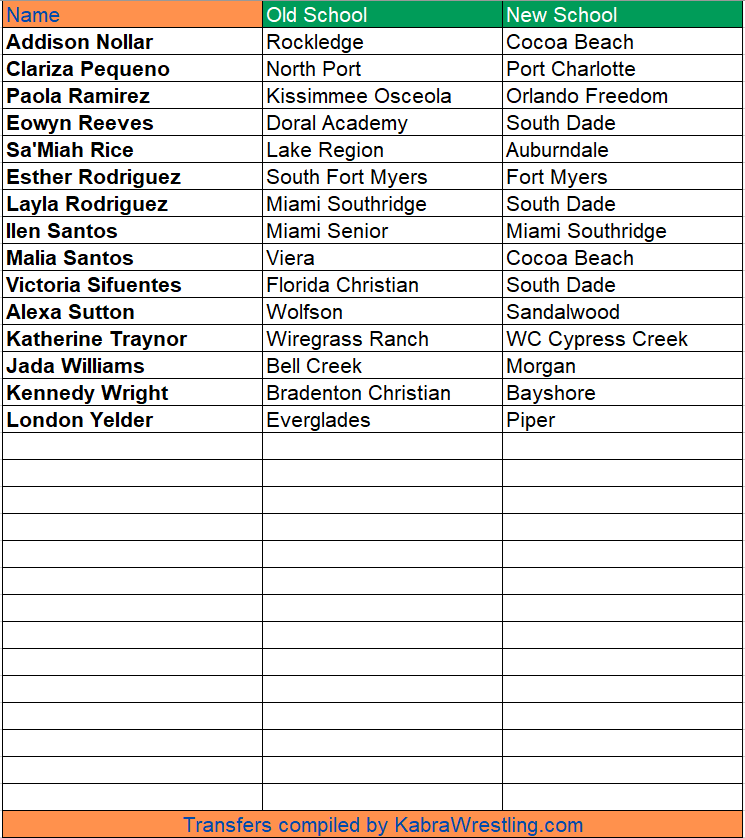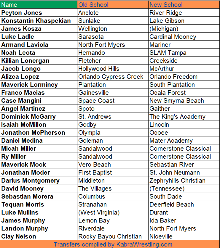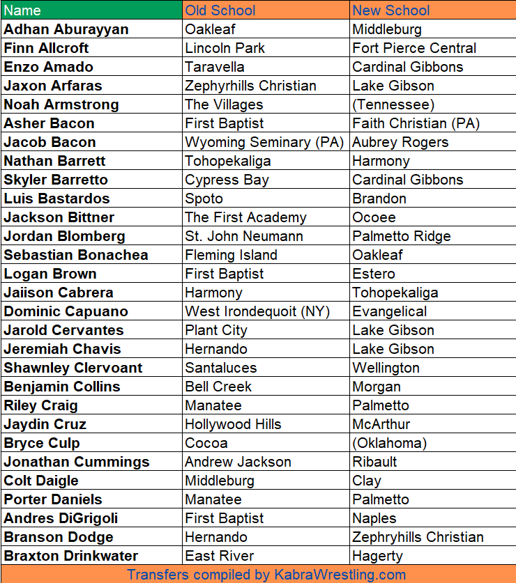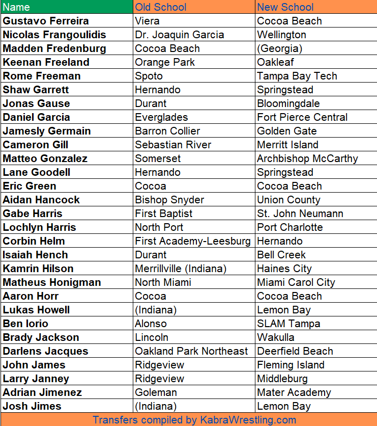BY BRANT PARSONS —Here are the transfers for the 25-26 Florida high school wrestling season that we’ve been made aware of.